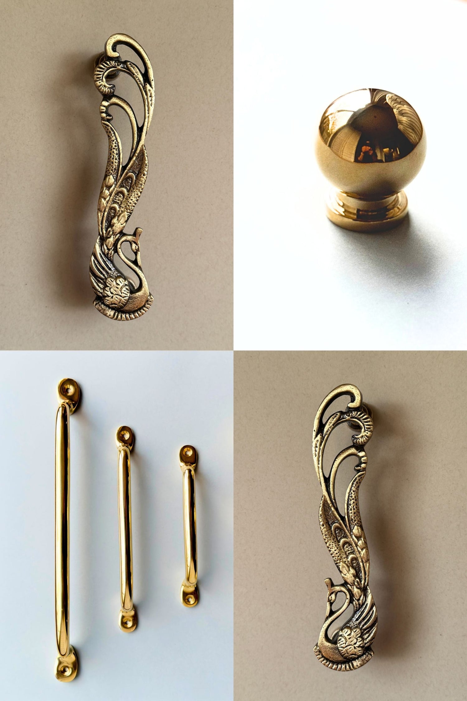 Antique Brass Peacock Cabinet & Door Handles/Pulls