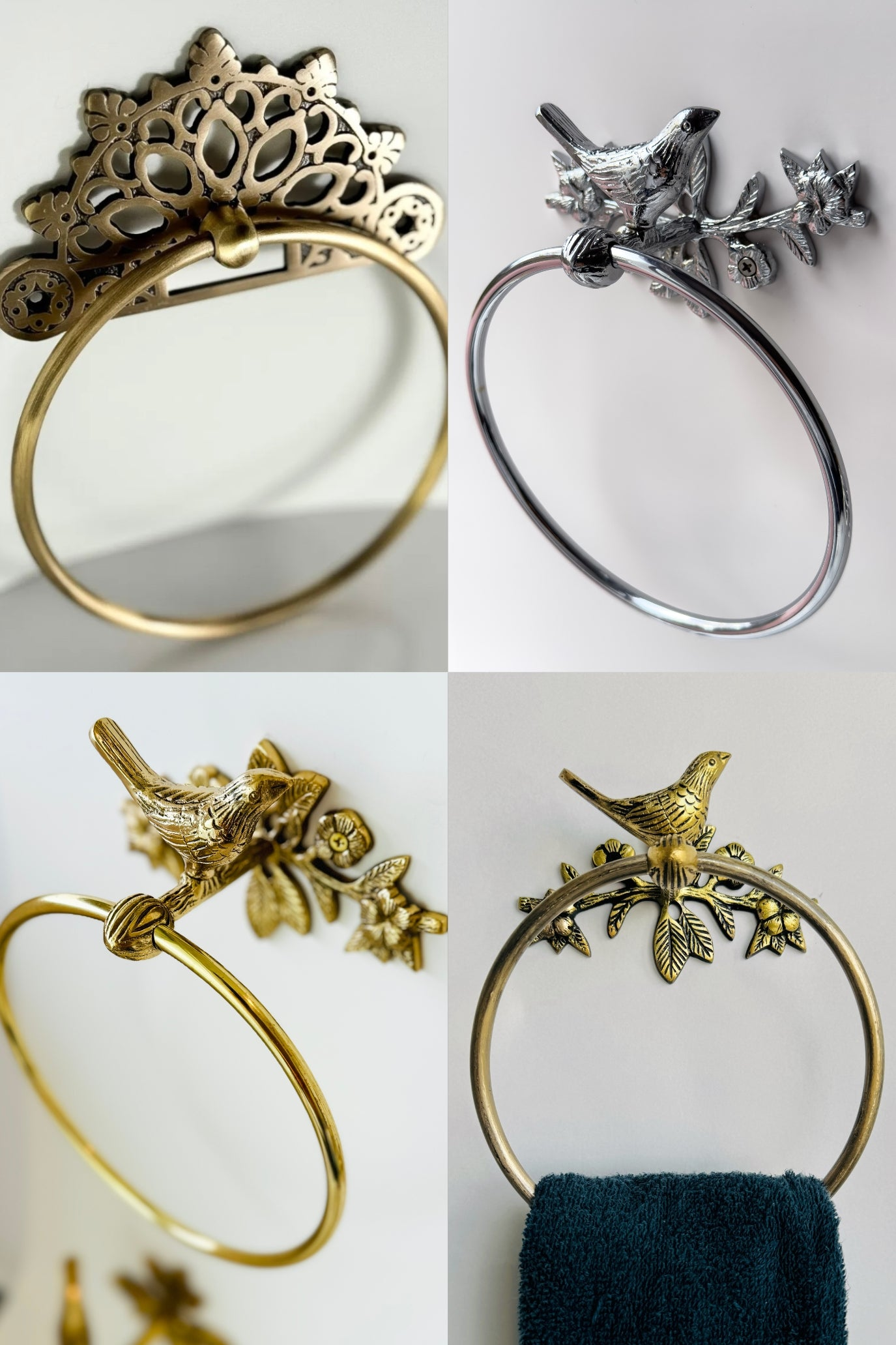 Antique Bird Collection Bundle Pack (4 Pcs) | Towel Ring + Roll Holder + Hook + Rack