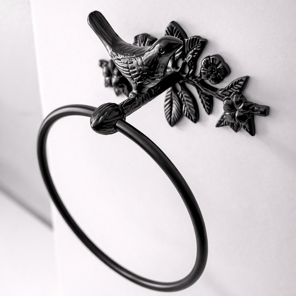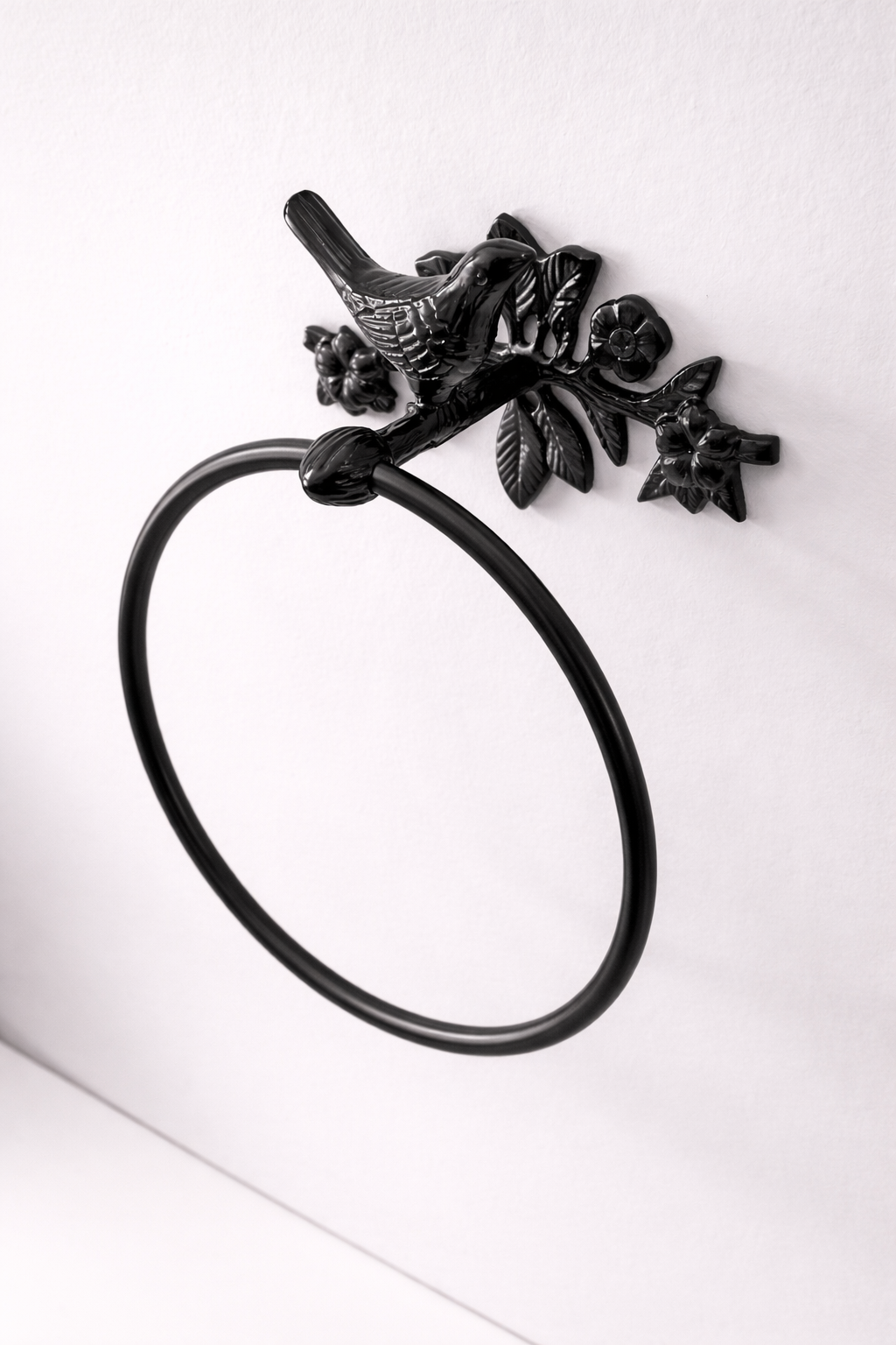 Portasciugamani ad anello in ottone a forma di uccello antico